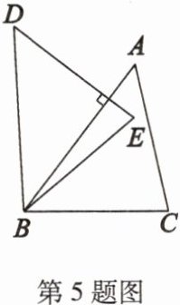 5. 如图,$\triangle DBE$是由$\triangle ABC$绕点$B$按逆时针方向旋转$40^{\circ}$得到的. 若$AB\perp DE$,则$\angle A$的度数是