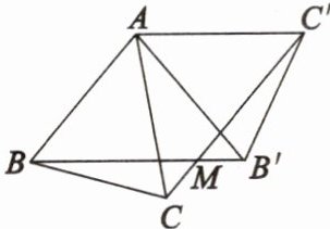 6. 如图,在$\triangle ABC$中,$AB = AC$,将$\triangle ABC$绕点$A$逆时针旋转得到$\triangle AB'C'$,连接$BB'$,$CC'$相交于点$M$。