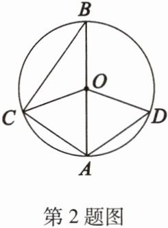 2. 如图,AB是⊙O的直径,点C,D在⊙O上,AC = AD,∠AOD = 70°,则∠BCO的度数是(