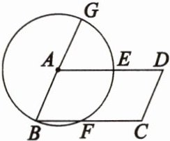 1. 如图,以□ABCD的顶点A为圆心,AB长为半径作圆,分别交AD,BC于点E,F,延长BA交⊙A于点G,求证:$\overgroup{GE}=\overgroup{EF}$。
