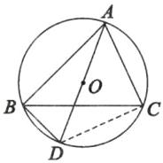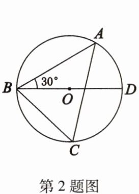 2. 如图,以BD为直径的⊙O刚好经过A,B,C三点,且∠ABD = 30°,则∠ACB的度数为