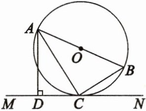 如图,$AB$ 是 $\odot O$ 的直径,$C$ 是 $\odot O$ 上的一点,直线 $MN$ 经过点 $C$,过点 $A$ 作直线 $MN$ 的垂线,垂足为 $D$,且 $\angle BAC = \angle CAD$.