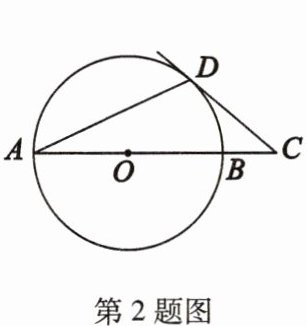 2. 如图,$AB$ 是 $\odot O$ 的直径,点 $C$ 在 $AB$ 的延长线上,$CD$ 切 $\odot O$ 于点 $D$,连接 $AD$. 若 $\angle A = 25^{\circ}$,则 $\angle C=$