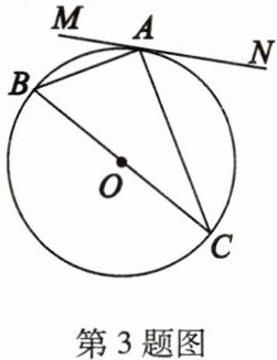 3. 如图,已知 $\triangle ABC$ 内接于 $\odot O$,$BC$ 是 $\odot O$ 的直径,$MN$ 与 $\odot O$ 相切,切点为 $A$. 若 $\angle MAB = 30^{\circ}$,则 $\angle B$ 的度数为