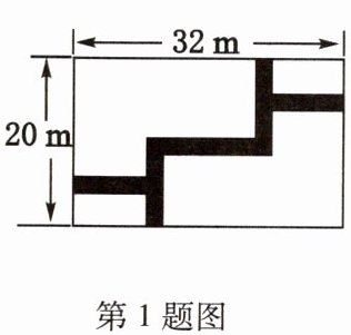 1. 如图,在长为 $32m$、宽为 $20m$ 的矩形地面上修筑同样宽的道路(图中阴影部分),余下部分种植草坪,要使道路的面积为 $100m^{2}$,设道路的宽为 $x m$,则可列方程为(