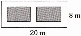 大矩形空地长$ 20m $、宽$ 8m $,通道宽度为$ x $,两块绿地相同且并排分布。