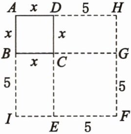 2. 公元 9 世纪,阿拉伯数学家花拉子米在其著作《代数学》中提到构造图形来寻找某个一元二次方程的解法:先构造边长为 $ x $ 的正方形 $ ABCD $,再分别以 $ BC $,$ CD $ 为边作另一边长为 5 的长方形,最后得到四边形 $ AIFH $ 是面积为 64 的正方形,如图所示。花拉子米寻找的是下列哪个一元二次方程的解(