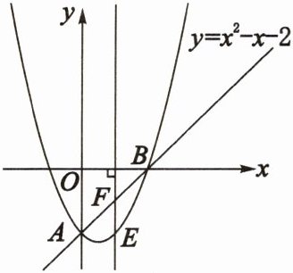 1. 如图,在平面直角坐标系中,抛物线$y = x^{2}-x - 2$分别交$y$轴、$x$轴于点$A$,$B$,动点$E$在抛物线上,$EF\perp x$轴,交直线$AB$于点$F$.则$EF$的长为