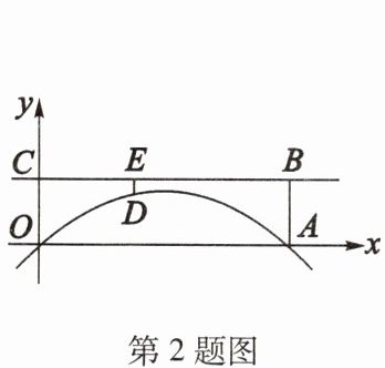2. 某大桥桥底呈抛物线,以O为原点,OA所在直线为x轴建立如图所示的平面直角坐标系,桥面CB$//$OA,其抛物线解析式为$y = -\frac{1}{320}(x - 80)^2 + 20$,抛物线上点A离桥面的距离AB=22米,若存在一点E使得$CE = \frac{3}{8}CB$,则点E到抛物线的距离ED=