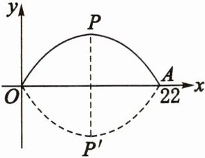 卢沟桥主桥拱可以近似地看作抛物线(如图),桥拱在水面的跨度OA约为22m,若按如图所示方式建立平面直角坐标系,则主桥拱所在抛物线可以表示为$y = -\frac{13}{121}(x - 11)^2 + k$,则主桥拱最高点P与其在水中倒影P'之间的距离为m.
