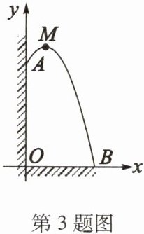 3. 如图,在某幢建筑物10m高的窗口A处用水管向外喷水,喷出的水流呈抛物线(抛物线所在平面与墙面垂直),如果抛物线的最高点M离墙1m,距地面$\frac{40}{3}$m,那么水流落地点B离墙的距离OB是(