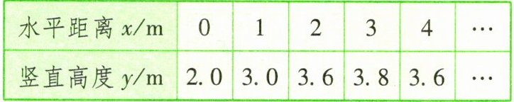 $\therefore y$与$x$满足的函数解析式为$y = - 0.2 ( x - 3 ) ^ { 2 } + 3.8$.