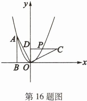 16. 如图,$Rt\triangle OAB$的顶点$A(-2,4)$在抛物线$y = ax^{2}$上,将$Rt\triangle OAB$绕点$O$顺时针旋转$90^{\circ}$,得到$\triangle OCD$,边$CD$与该抛物线交于点$P$,则点$P$的坐标为