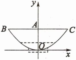 13. 如图是一个汤面碗的截面图,碗身可近似地看作抛物线,以碗底$O$为原点建立平面直角坐标系,已知碗口$BC$宽 28 cm,碗深$OA = 9.8$ cm,则当满碗汤面的竖直高度下降 6.6 cm 时,碗中汤面的水平宽度为