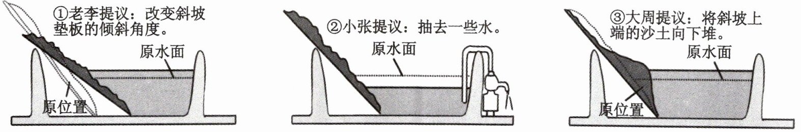 大周**:将斜坡上端的沙土向下堆,类似于人类活动。人类的填海造陆等活动可以改变海陆分布。
