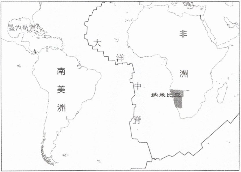近年来,非洲纳米比亚沿海发现了大量形成于2亿年前的石油。下图为世界某区域示意图。据此完成12、13题。