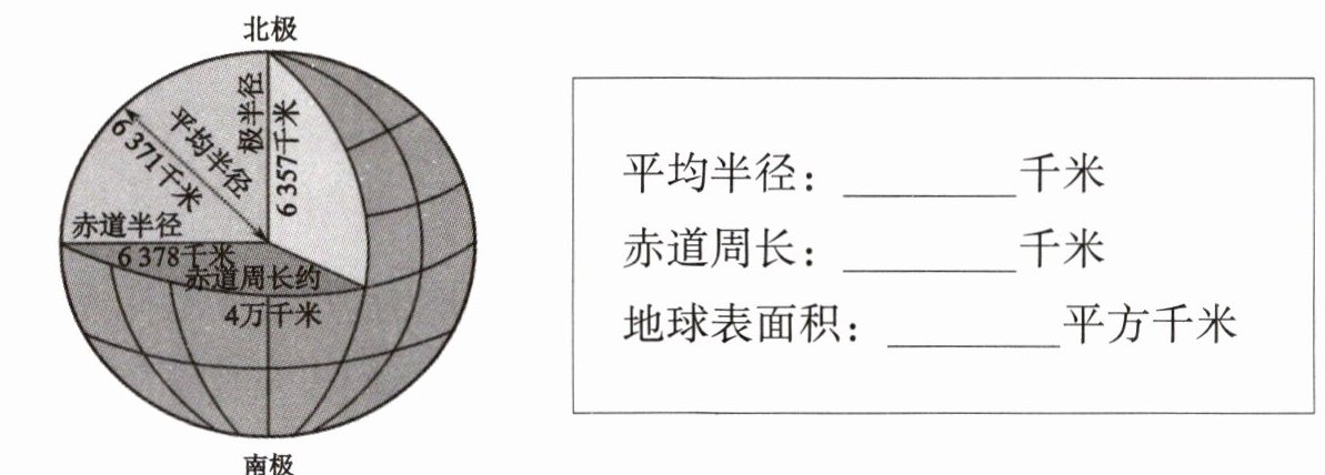 1. 两极稍扁、赤道略鼓 2. 约6 371 约4万 约5.1亿 3. 实践证明