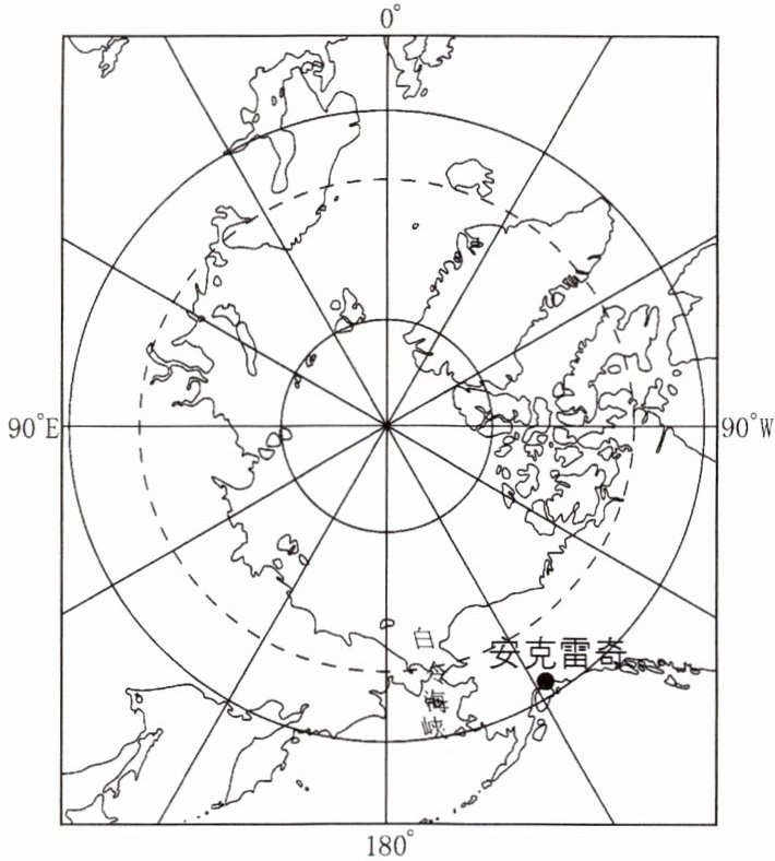 2021年3月,中美高层战略对话在美国阿拉斯加州最大城市安克雷奇举行。下图示意北极及其附近地区。据此完成8~10题。