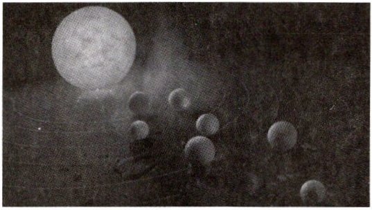 2017 年 2 月 23 日,美国国家航空航天局(NASA)与比利时天文学家团队宣布:在距离地球 39 光年的“Trappist - 1”恒星系统的七颗行星中,有三颗位于宜居带。“Trappist - 1”的质量和表面温度分别约为太阳的十分之一和二分之一。下图示意“Trappist - 1”天体系统。据此完成 9、10 题。