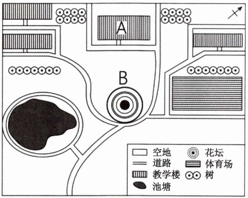 只要善于观察和发现,校园生活处处有地理。下图为小王同学绘制的某中学校园平面示意图。