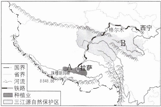 12. 【三江源保护】读青藏地区图,完成下列要求。