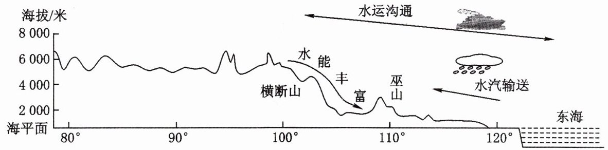)①西高东低,利于海上湿润气流深入内陆 ②阶梯交界处水能丰富,便于发电 ③第三级阶梯海拔高,多发展畜牧业 ④河流多自东向西流,方便沿海与内陆的水运联系