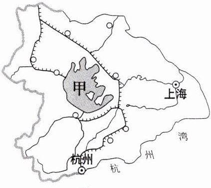 下图所示区域是我国长江三角洲著名水乡。读图,完成6、7题。