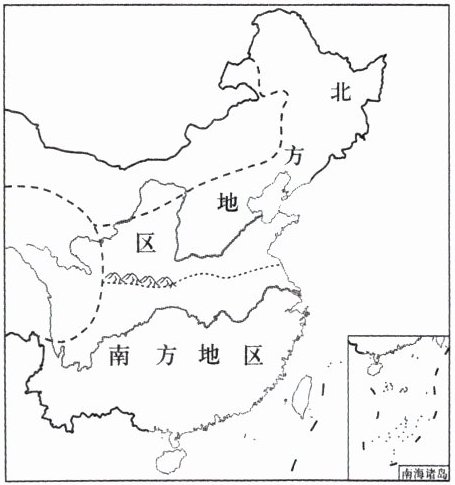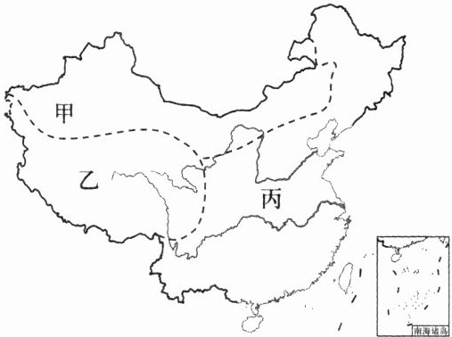 结合地形、气候两大要素,可以把我国分成三大自然区:东部季风区、青藏高寒区和西北干旱半干旱区。下图为我国三大自然区分布示意图。据此完成1~3题。