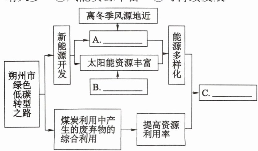 (3) 下图是朔州市探索绿色低碳转型之路关联图。将下列备选项序号填入图中的相应位置。