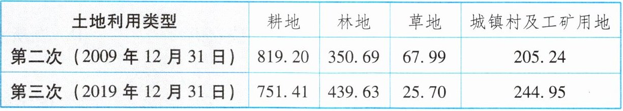 变化:耕地、草地面积减少;林地、城镇村及工矿用地面积增加。 建议:强化土地规划管控,保障土地科学利用;严控建设用地规模,提高其利用效率;落实耕地、草地保护制度。