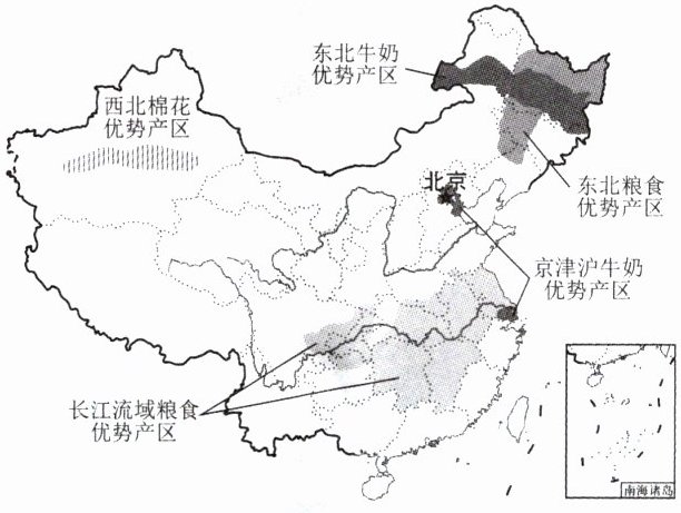 例 下图示意我国部分农产品优势产区布局。读图,完成下面小题。