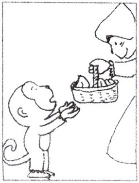 有一天,外婆交给小猴子一篮果子,叫他送给妈妈。(请另附纸)