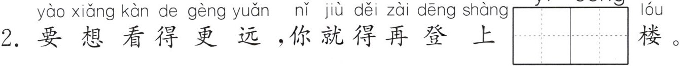2. 要想看得更远,你就得再登上$\begin{array}{|c|c|c|c|}\hline yì & céng & & \\\hline\end{array}\\\hline $楼。