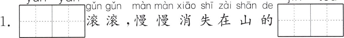 1. $\begin{array}{|c|c|c|c|}\hline yún & yān & & \\\hline\end{array}\\\hline $滚滚,慢慢消失在山的$\begin{array}{|c|c|c|c|}\hline jìn & tóu & & \\\hline\end{array}\\\hline $。