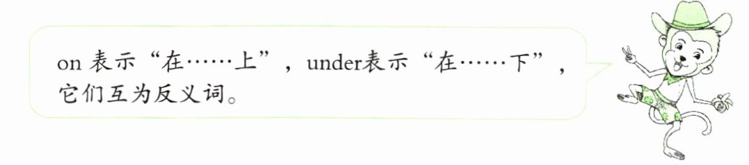 on表示“在……上”,under表示“在……下”,它们互为反义词。