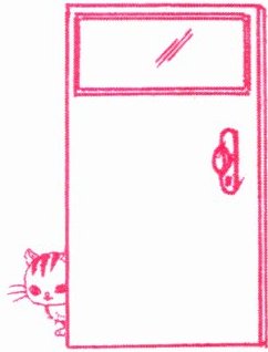 5. —Where is the cat? —It's ______ the door.