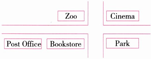4. The post office is ______ the bookstore.