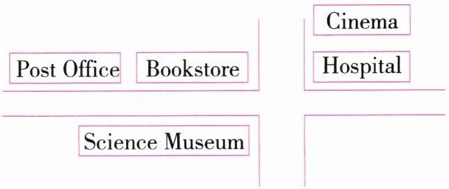 ( ) 5.—Where is the hospital? —It's ______ the science museum.