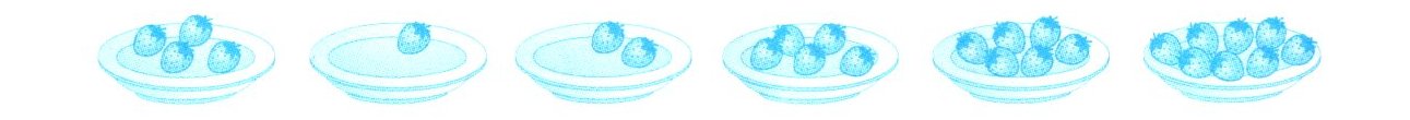 )盘有 2 个草莓。(2)从右往左数,第 2 盘有(