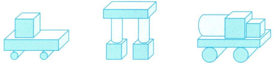 2. 先照样子搭一搭,再说说搭出的是什么,用了哪些形状的积木,各用了多少块。