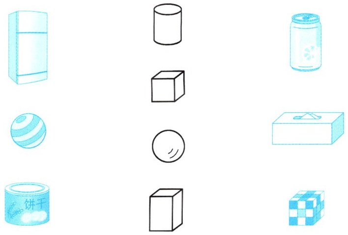 (此处需根据实际插图中图形与名称的对应关系连线,因未提供插图具体内容,无法给出准确连线结果,实际答题时应将同类立体图形相连)