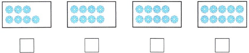8. 下面 4 组花片中,把哪几组花片分给 2 人,能使每人分得的花片同样多?在它们的下面画√。
