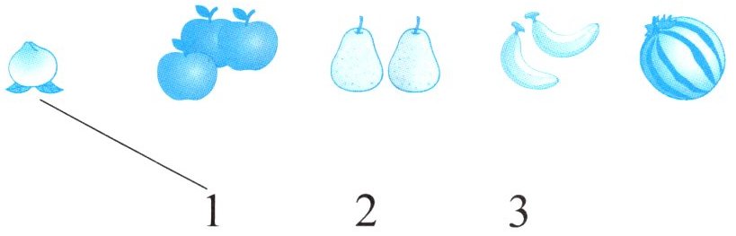 香蕉:3个,连数字3(苹果和香蕉都是3个,都连数字3);