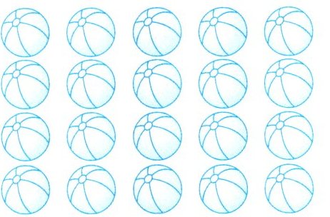)行。求一共有多少个皮球,加法算式是5+5+5+5=20