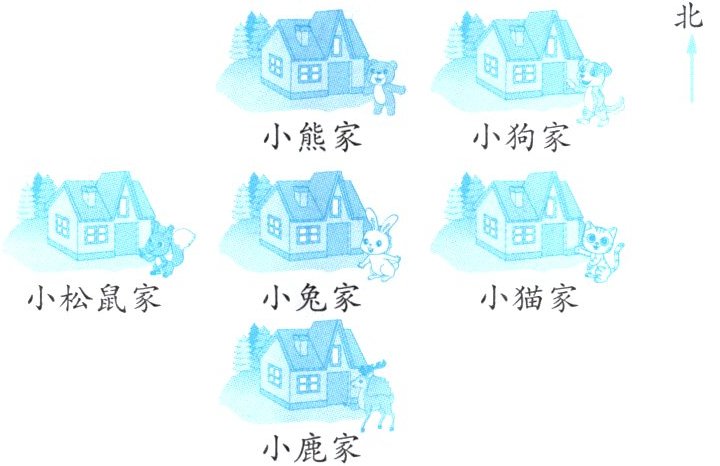 (1)小松鼠住在小兔的西面,小猫住在小兔的( )面。