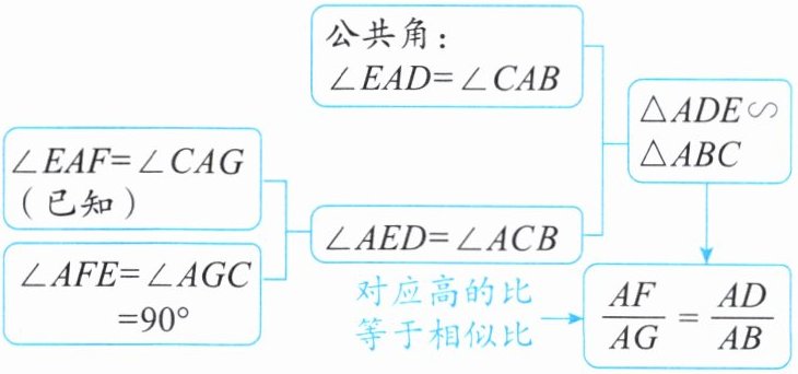 A[∠EAF=∠CAG(已知)] --> B[∠AED=∠ACB]