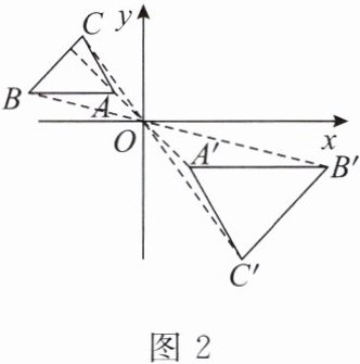 2. 如图 2,在平面直角坐标系中,$\triangle ABC$ 与 $\triangle A'B'C'$ 位似,位似中心为原点 $O$。