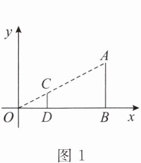 1. 如图 1,在平面直角坐标系中,有 $A(6,3)$,$B(6,0)$ 两点,以原点 $O$ 为位似中心,相似比为 $\frac{1}{3}$,在第一象限内把线段 $AB$ 缩小后得到线段 $CD$,则点 $C$ 的坐标为(