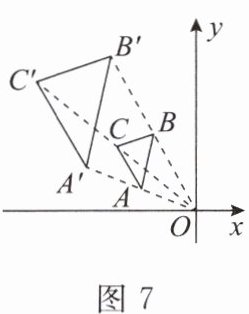 (1)以原点 $O$ 为位似中心,将 $\triangle ABC$ 放大为原来的 $2$ 倍,在图 6 的网格图中画出放大后的图形。