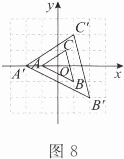 2. 如图 8,已知 $\triangle ABC$ 与 $\triangle A'B'C'$ 是以原点 $O$ 为位似中心的位似图形,且 $\frac{OA}{OA'}=\frac{1}{2}$。若点 $A(-1,0)$,点 $C(\frac{1}{2},1)$,则 $A'C'$ 的长为(
